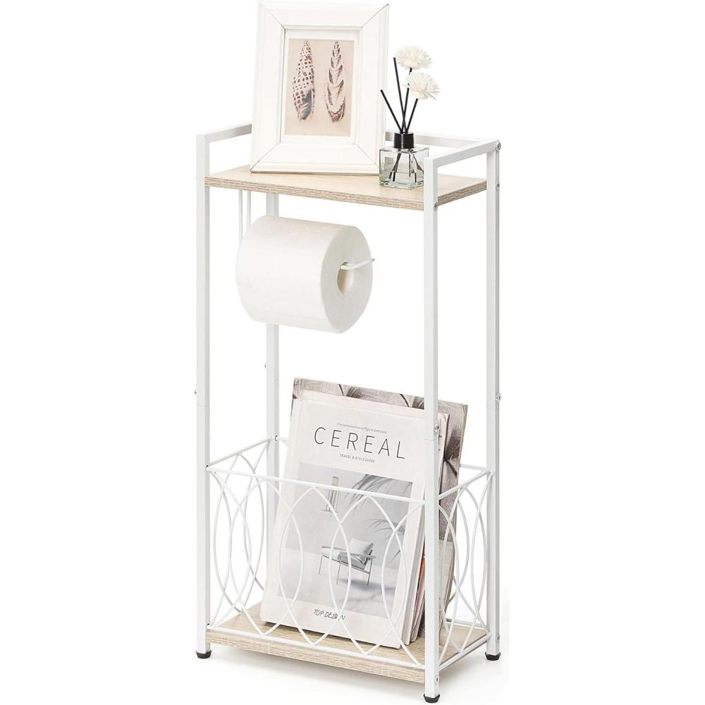 imageSunnyPoint Classic Freestanding Toilet Paper Holder with Storage Shelf  Bathroom Tissue Stand with Space for Phone Tablet and Magazines  AllinOne Toilet Roll Dispenser and Organizer BlackWhite
