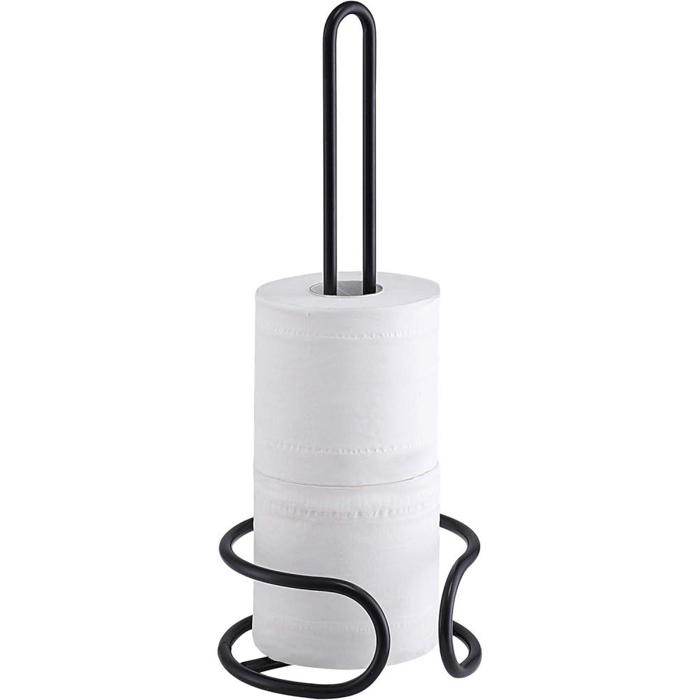 imageSunnyPoint Heavy Gauge Toilet Paper Holder Stand  Freestanding Tissue Roll Storage for 3 Rolls  Durable Steel with RustResistant Black Finish  Easy Assembly with Tools IncludedBlack