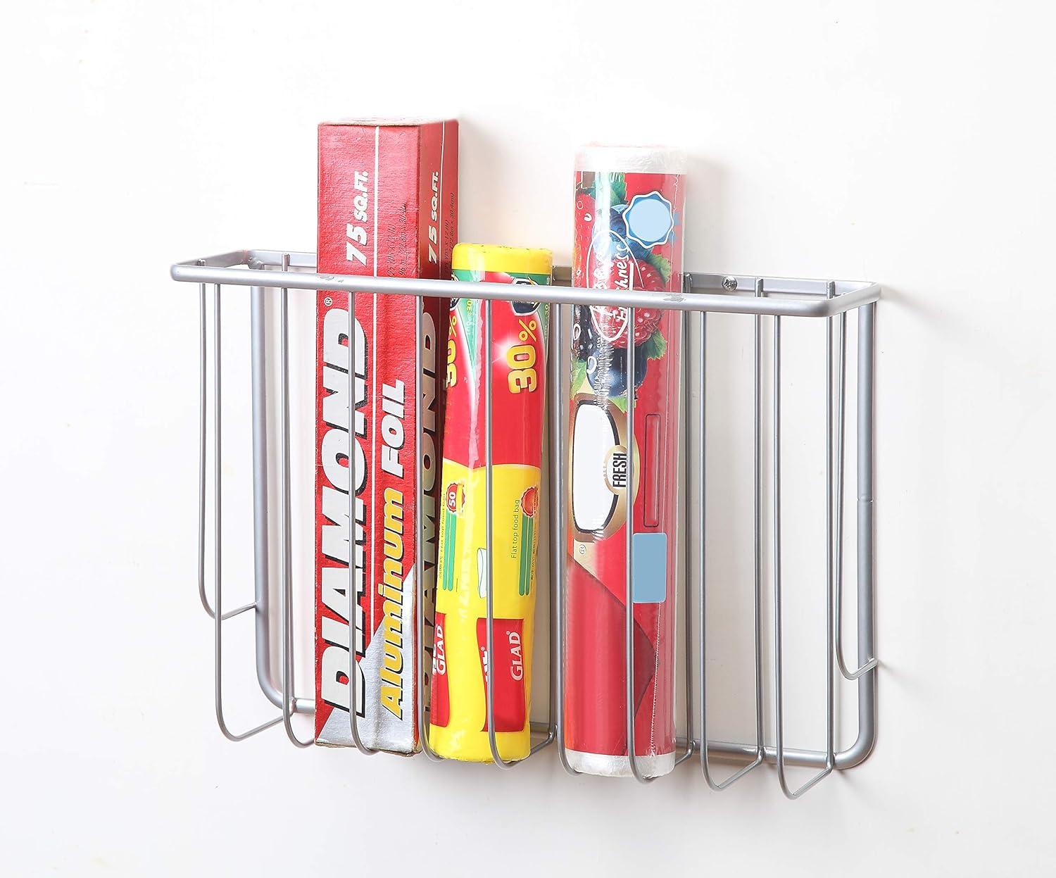SunnyPoint Over Cabinet Kitchen Storage Organizer Holder or Basket – Hang Over Cabinet Doors in Kitchen/Pantry – Holds up to 50 Plastic Shopping Bags (SILVER)(Brown)